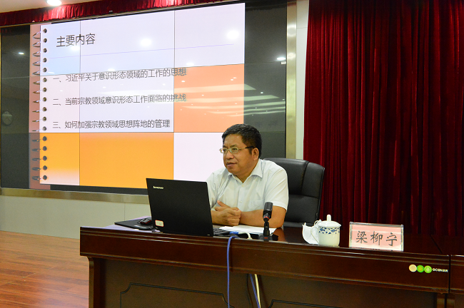 自治区民族宗教事务委员会党组成员、副主任梁柳宁在授课。自治区档案馆 丘革灵/摄