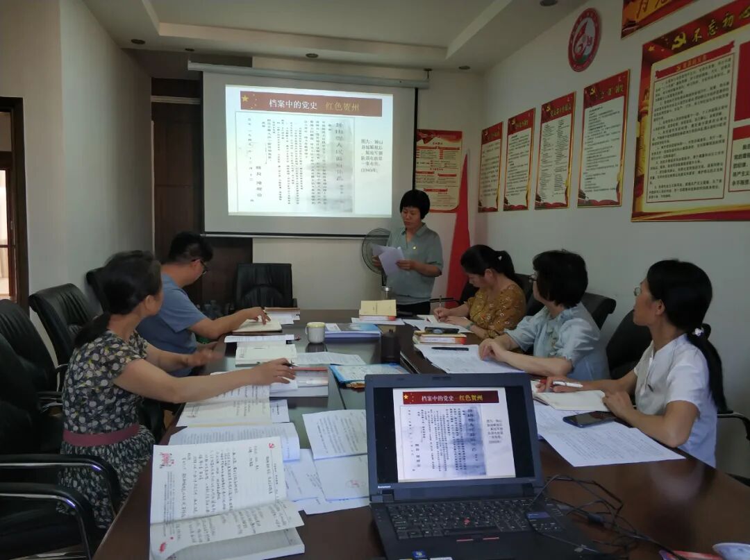 ——开展“档案话百年”主题党日活动,推动档案工作高质量发展。6月9日下午,市档案馆党支部召开“档案话百年”主题党日活动,活动中,馆长、党支部书记柳雪英传达学习了中办国办印发《“十四五”全国档案事业发展规划》;创新推出专题学习栏目“档案中的党史”,党员代表利用馆藏档案资源,用红色档案讲述贺州发展历程。会上,组织全体档案干部参加“档案话百年”全国档案文化知识答题以及“宝葫芦”杯档案法知识竞赛。广大档案工作者纷纷表示,要继续深入学习贯彻习近平新时代中国特色社会主义思想和新修订的《档案法》,学习习近平在广西考察时的重要讲话精神,坚守“为党管档、为国守史、为民服务”工作职责,在庆祝建党100周年和党史学习教育中展现新作为,在服务“两大主战场”中彰显新担当,在记录长寿贺州建设历程中谱写新篇章,推动全市档案事业高质量发展。