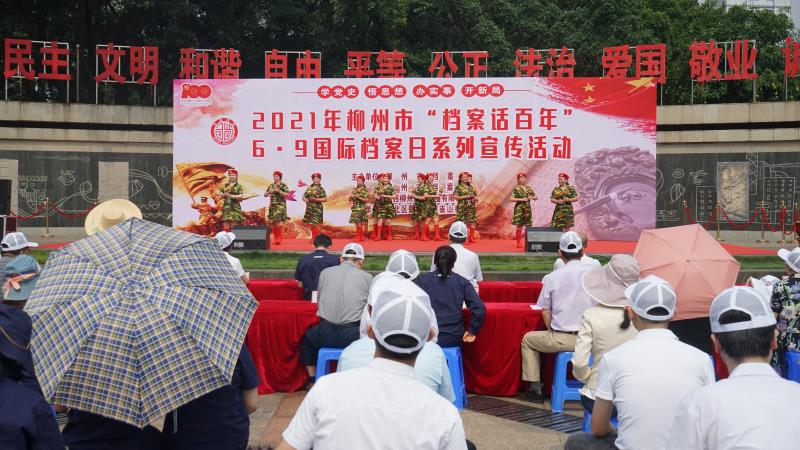 6月9日,柳州市档案局、市档案馆、广西柳州钢铁集团有限公司共同主办的“档案话百年”国际档案日系列宣传活动在柳钢文化广场展开。中共柳州市委副秘书长、办公室副主任、柳州市档案局局长韦以辉,柳钢股份公司副总经理、董事会秘书裴侃,市档案馆馆长付和艺出席此次活动,柳州市档案局(馆)、各县区档案局(馆)、各专业档案馆相关人员、柳钢集团相关人员及柳北区雀山社区工作人员共100多人参加此次活动,共同欢庆“6·9”国际档案日。