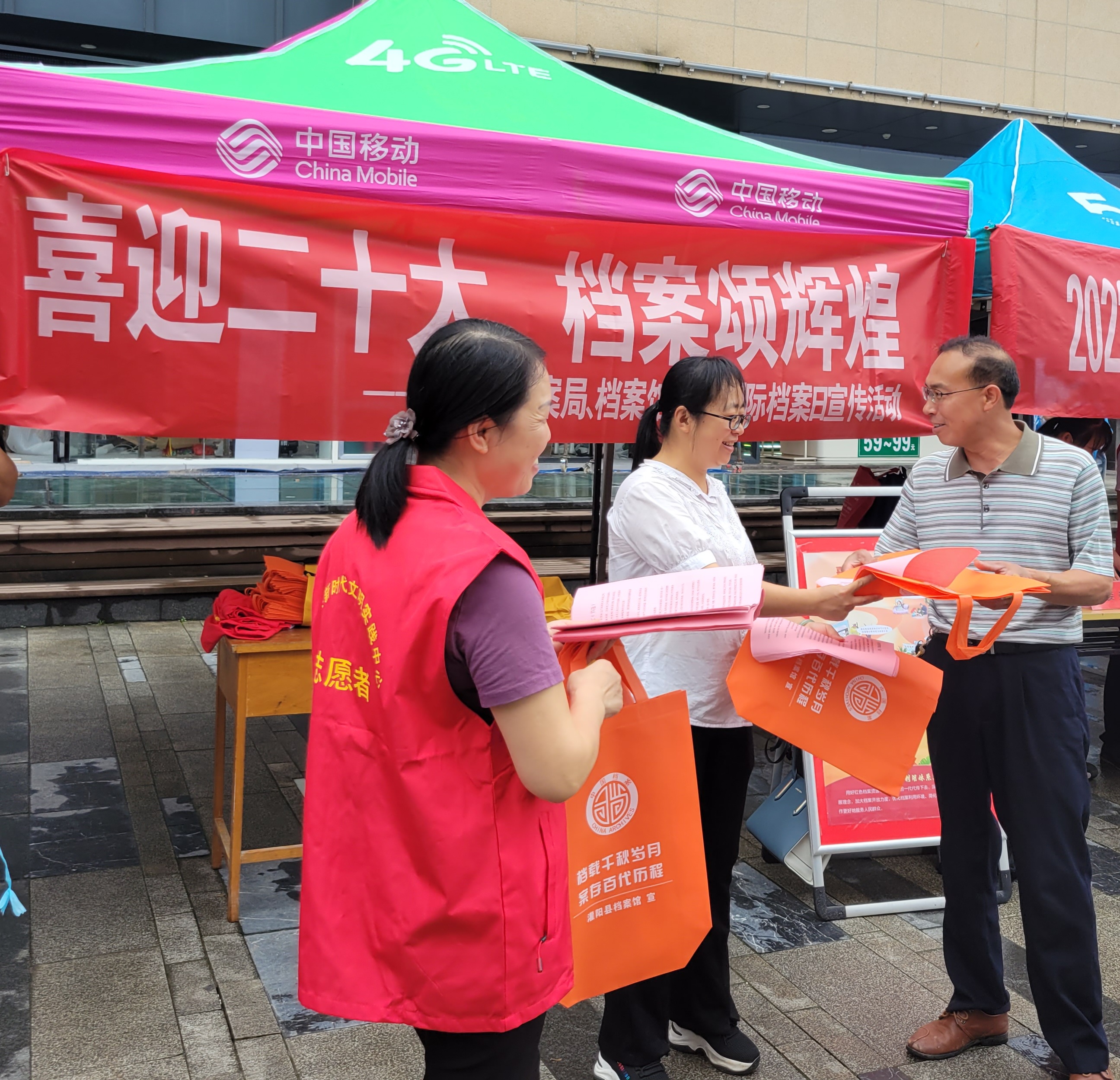 6月9日,灌阳县档案局、档案馆在县观澜购物广场门口联合开展了以“喜迎二十大 档案颂辉煌”为主题的国际档案日宣传活动。