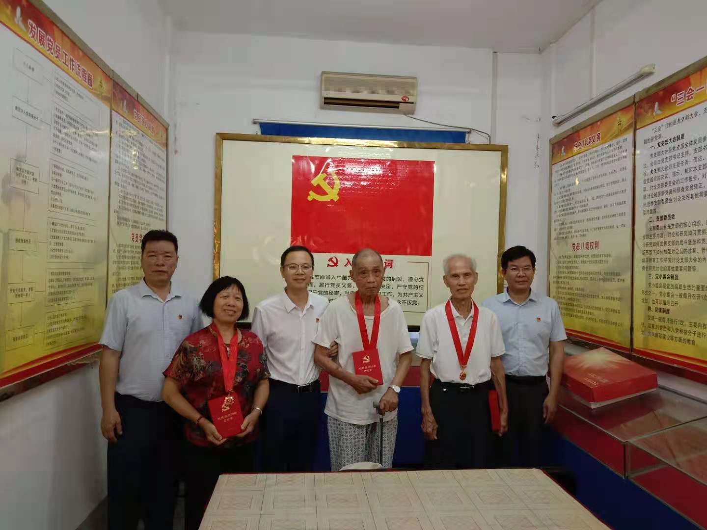 6月21日上午,玉林市档案馆党支部举行“光荣在党50年”纪念章颁发仪式,6位老党员获得殊荣,3名老党员代表参加活动。
