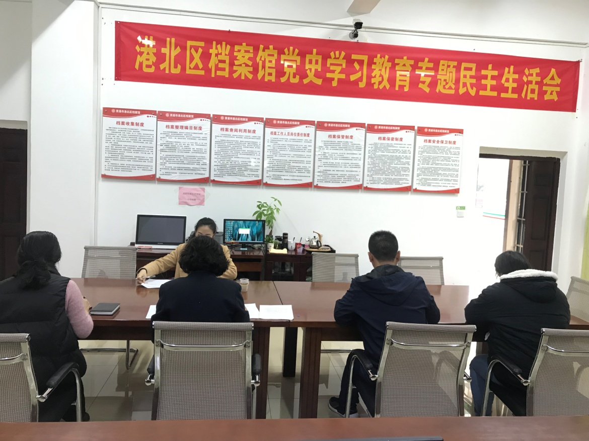 2022年1月27日,贵港市港北区档案馆召开党史学习教育专题民主生活会,会议紧扣主题,紧密联系档案工作实际,坚持问题导向,查摆问题不足,认真检视剖析,严肃开展批评和自我批评,明确整改措施和努力方向。馆长林海主持会议。第六督导组成员莫华利同志到会指导。