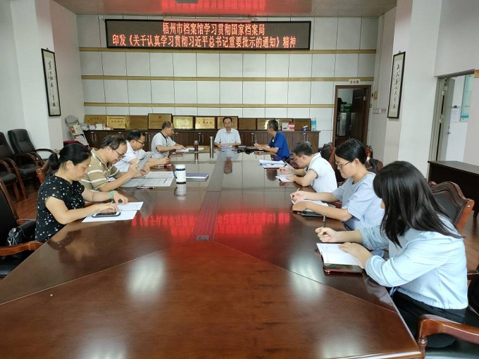 7月30日,梧州市档案馆召开全馆干部职工会议,专题学习贯彻习近平总书记对档案工作的重要批示精神。馆长宁波主持学习会并对贯彻落实批示精神提出具体要求。