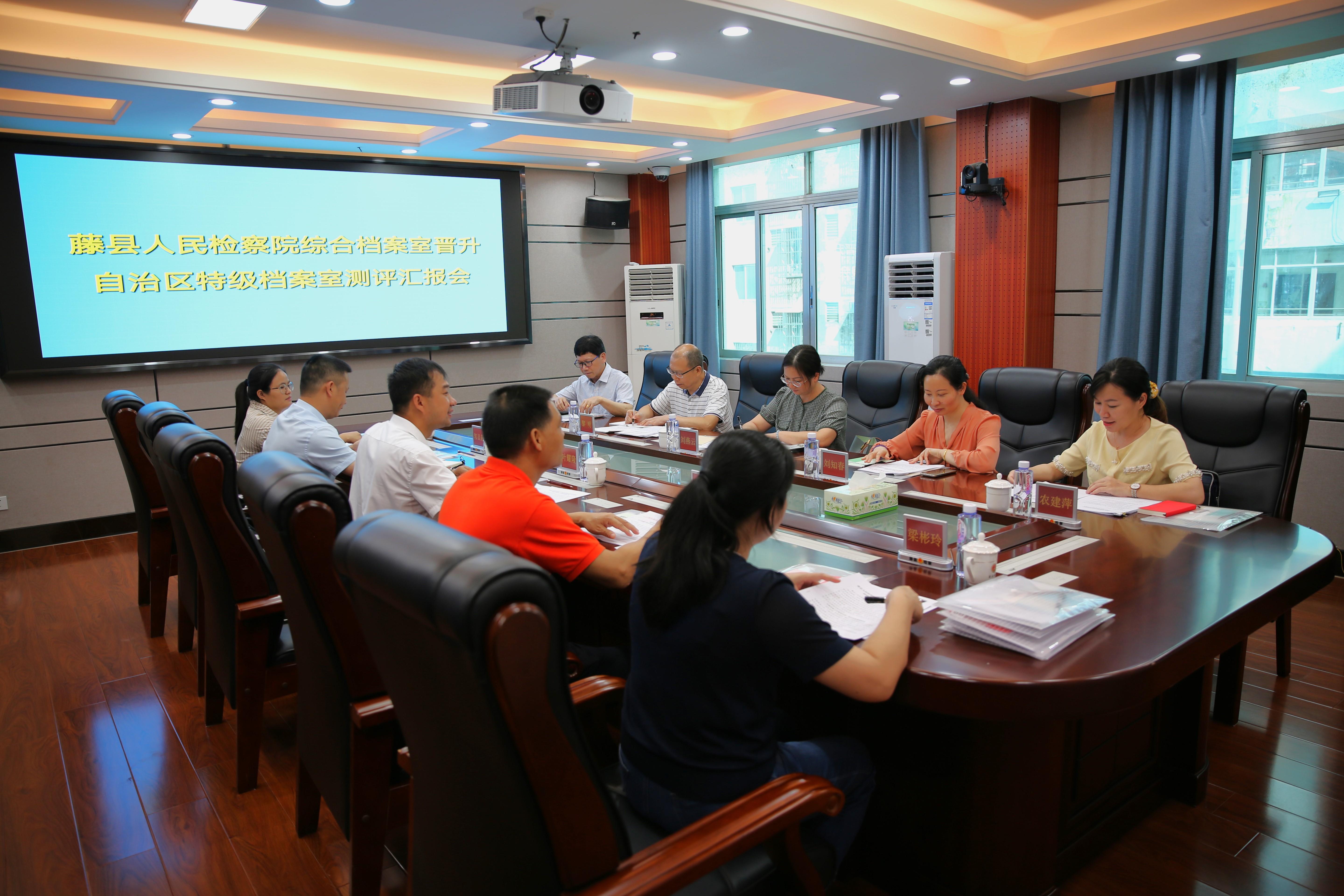 自治区档案局测评专家组通过听取汇报、实地查看、检查档案、验证材料以及汇总考评意见等程序,对藤县人民检察院综合档案室创建自治区特级档案室进行了全面考评,认为各项工作达到特级档案室标准,一致同意藤县人民检察院综合档案室晋升为自治区特级档案室。