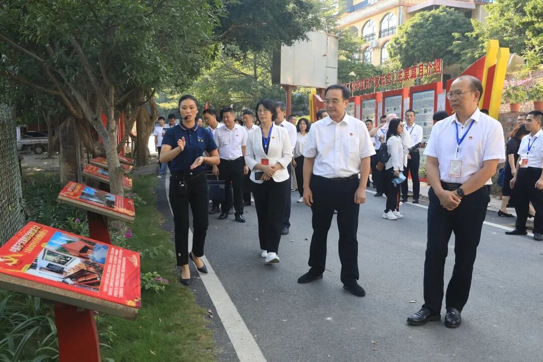 参观红色步道,重温党从一大到十九大的历史。