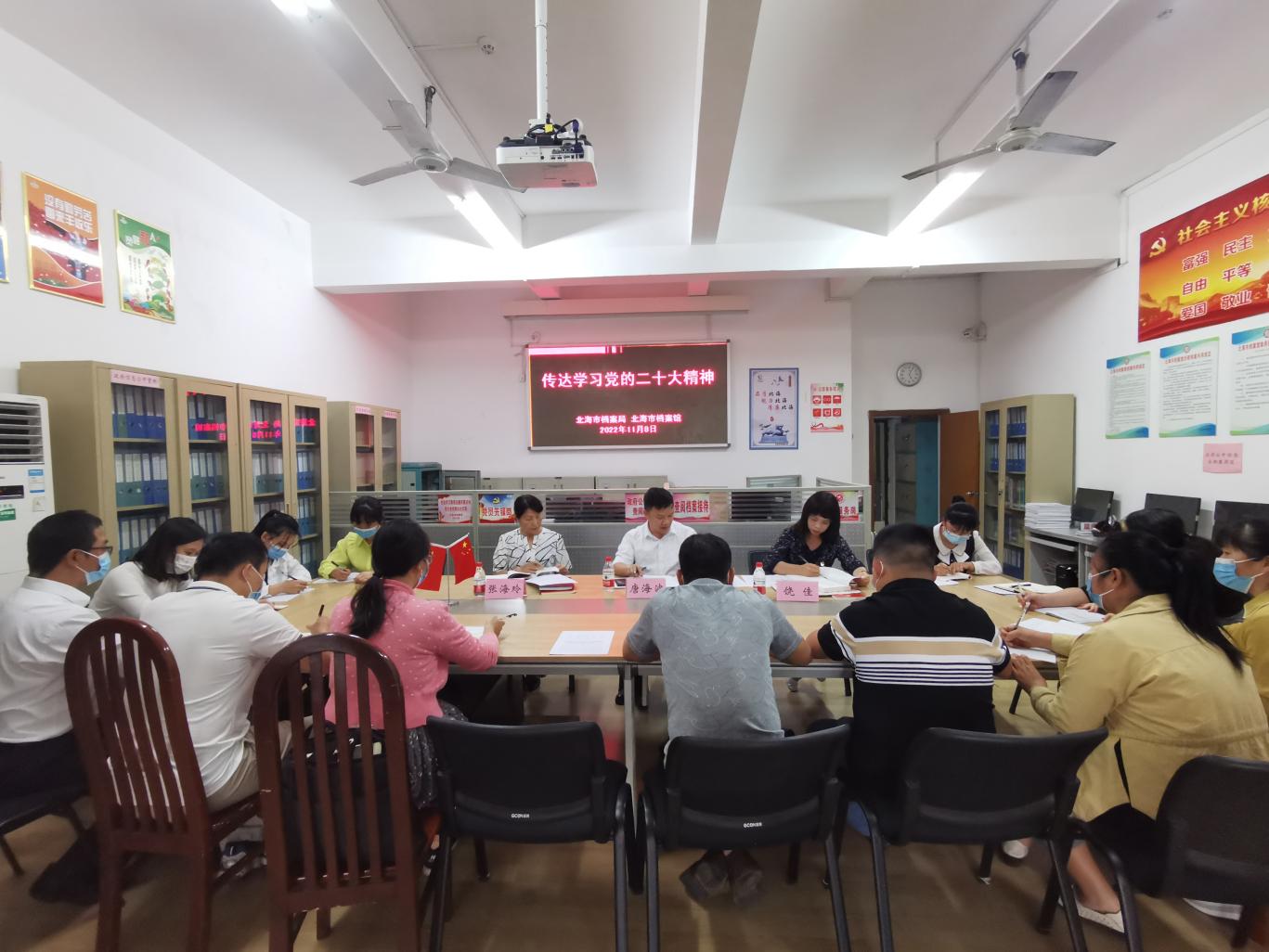 2022年11月8日,北海市档案局、档案馆召开局馆联席会议,学习贯彻党的二十大精神,认真学习习近平总书记对档案工作重要批示精神以及自治区党委书记刘宁同志,自治区党委常委、秘书长、办公厅主任周异决同志对档案工作的批示要求,对局馆下一步工作进行了部署。北海市委副秘书长、办公室副主任、市档案局局长唐海波主持会议并讲话。