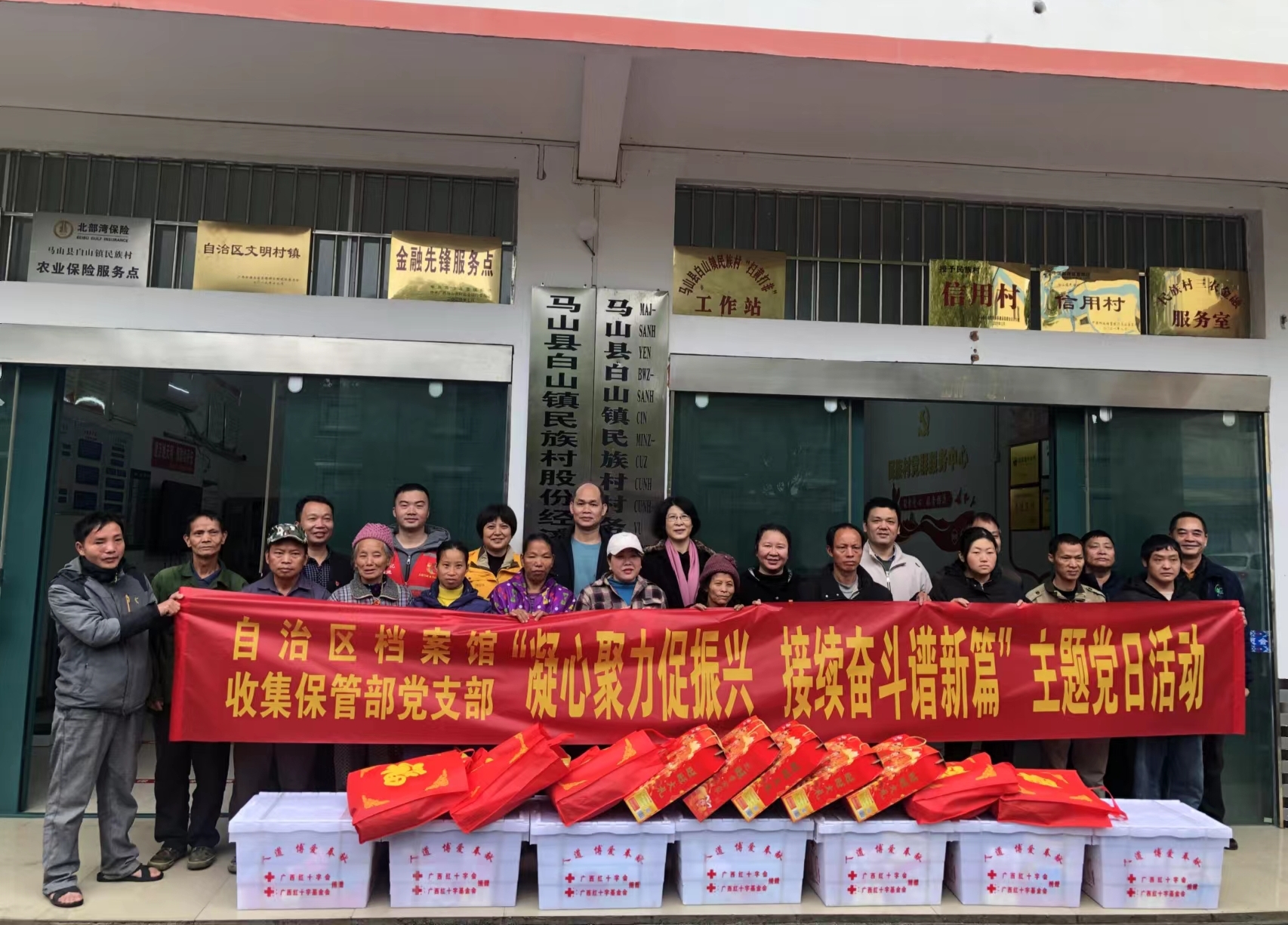 为贯彻落实党的二十大精神,助力乡村振兴工作,2023年1月12日,自治区档案馆副馆长、收集保管部党支部书记蒋宏灵带领自治区档案馆收集保管部党支部党员赴扶贫点开展“凝心聚力促振兴 接续奋斗谱新篇”主题党日活动。驻村第一书记、党员代表、群众代表等30余人参加。