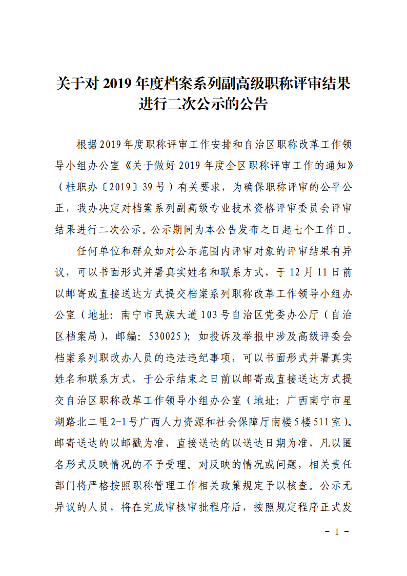 关于对2019年度档案系列副高级职称评审结果进行二次公示的公告