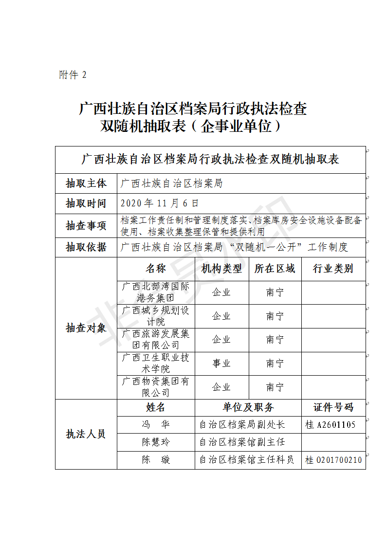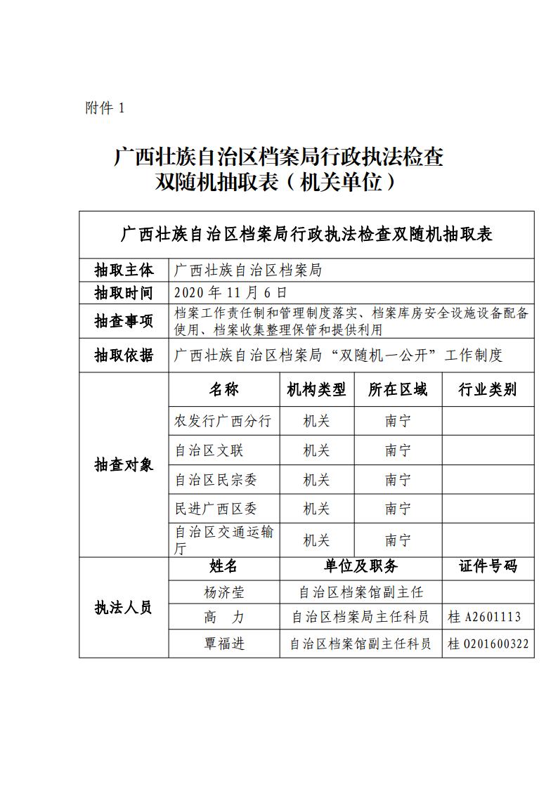 附件:1.广西壮族自治区档案局行政执法检查双随机抽取表(机关单位)