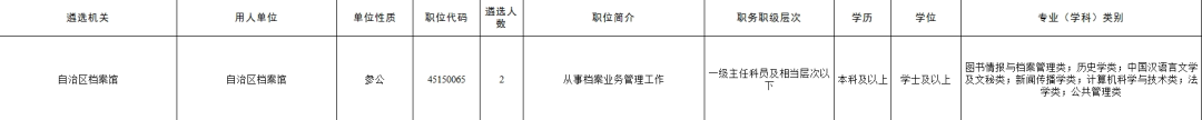 自治区档案馆遴选2人