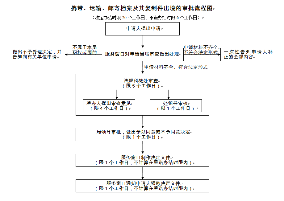 携带、运输、邮寄档案及其复制件出境的审批流程图