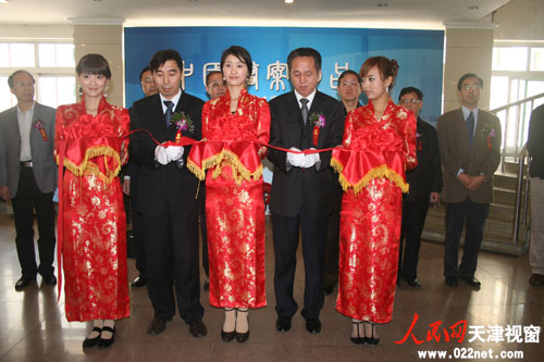 国家档案局中央档案馆副局馆长李明华(第一排右二)和天津市档案局副局长张俊桓(第一排左二)为《中国档案珍品展》剪彩 (于超 摄影)