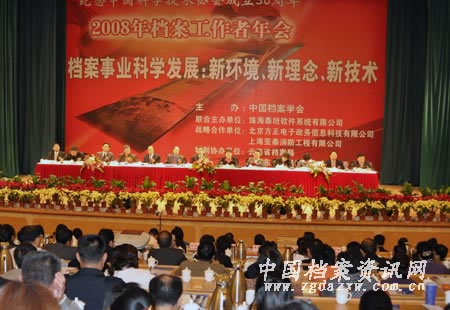 全国政协委员、北京市科协副主席王渝生做了《学术交流与创新型国家建设》的主旨报告。中国人民大学副校长、中国档案学会副理事长冯惠玲教授,国家档案局技术部主任王良城、山东省档案局局长张奎明等做了大会发言。大会之后,1200名档案工作者围绕着档案学理论、档案法制、档案资源建设、档案整理与鉴定、档案信息资源开发与服务、社会科技创新与档案保护、档案信息化与数字化建设、档案缩微技术与数字影像技术、新时期企业档案工作等主题在8个分会场上展开了热烈的研讨。