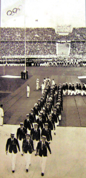 1936年8月1日,柏林奥运会开幕式上,中国体育代表团整队出场。