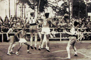 1936年8月9日,柏林奥运会首轮篮球比赛中,中国队以45比38战胜法国队。