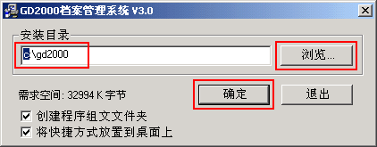 2、选择主程序安装目录。GD2000默认安装在“C”盘根目录下,建议用户手动安装到别的分区盘中。改变安装目录可直接在输入框中输入盘符,或点击“浏览”选择已经建好的文件夹。点击“确定”后,照提示点击“下一步”即可安装完成。