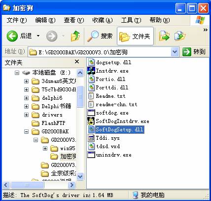 3.2、手动安装加密狗驱动。加密狗驱动安装程序为“SoftDogInstdrv.exe”,如图: