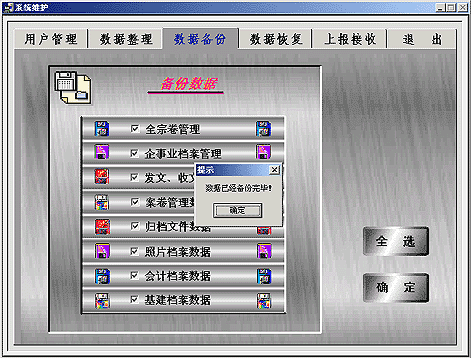 1、运行“GD2000档案管理系统”,进入“系统维护”内的数据备份模块;
