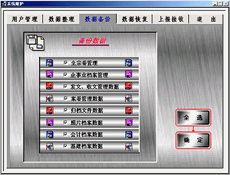 1、运行“GD2000档案管理系统”,进入“系统维护”内的数据备份模块;