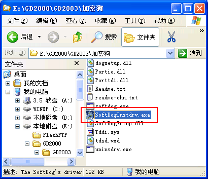 3.2、手动安装加密狗驱动。加密狗驱动安装程序为“Instdrv.exe”,如图: